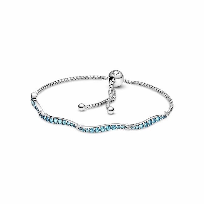 Bracelet Pandora coulissant vagues bleu en argent et cristaux, taille 23cm