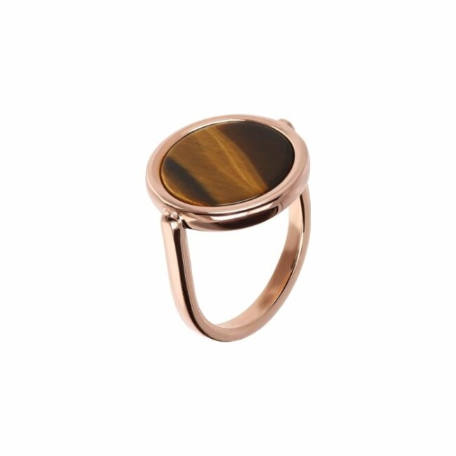 Alba Bague Bronzallure Alba Cocktail Petit Disque en métal doré rose à l'or fin 18 carats et œil de tigre, taille 54