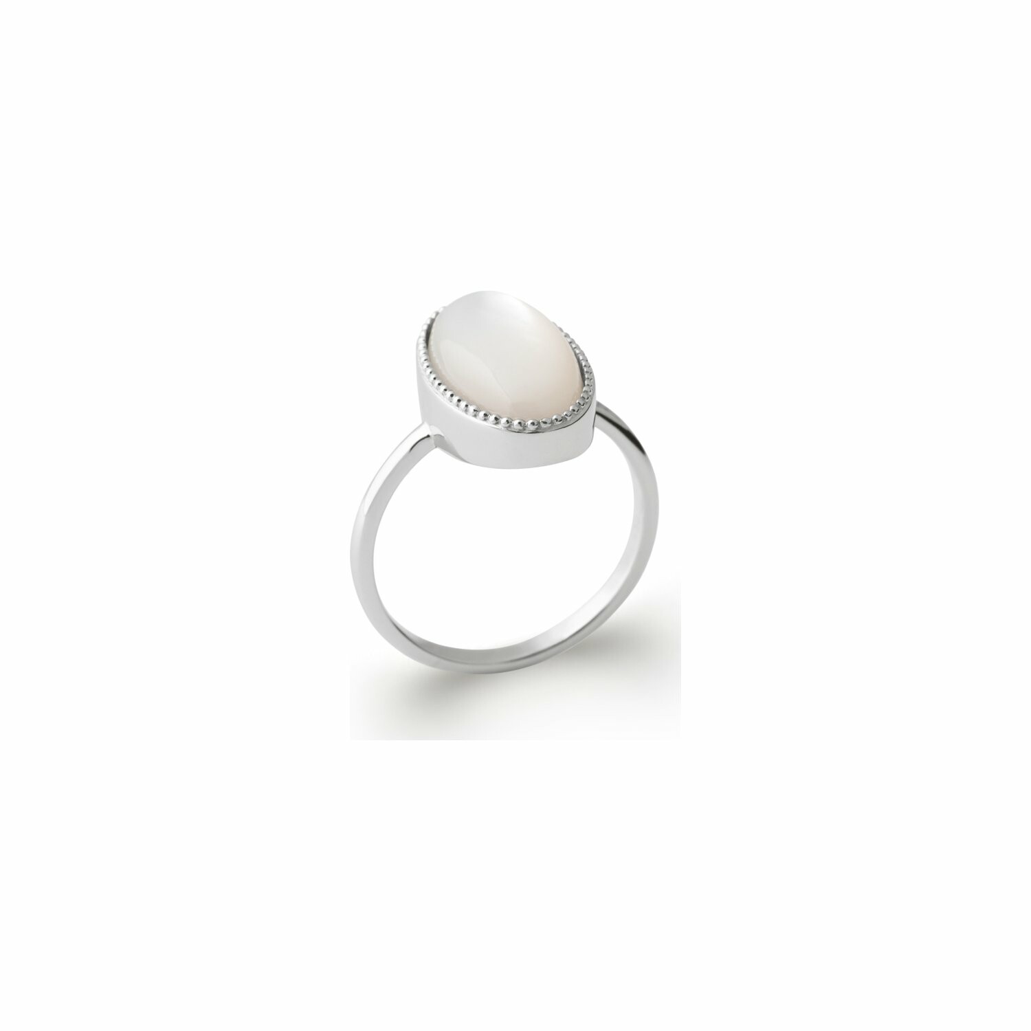 Bague en argent rhodié et pierre synthétique