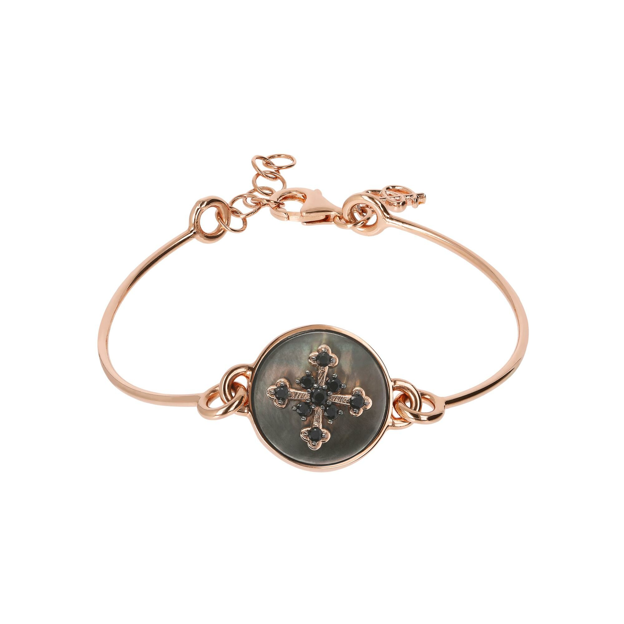 Alba Bracelet Bronzallure Alba en métal doré rose à l'or fin 18 carats et onyx et perle de culture