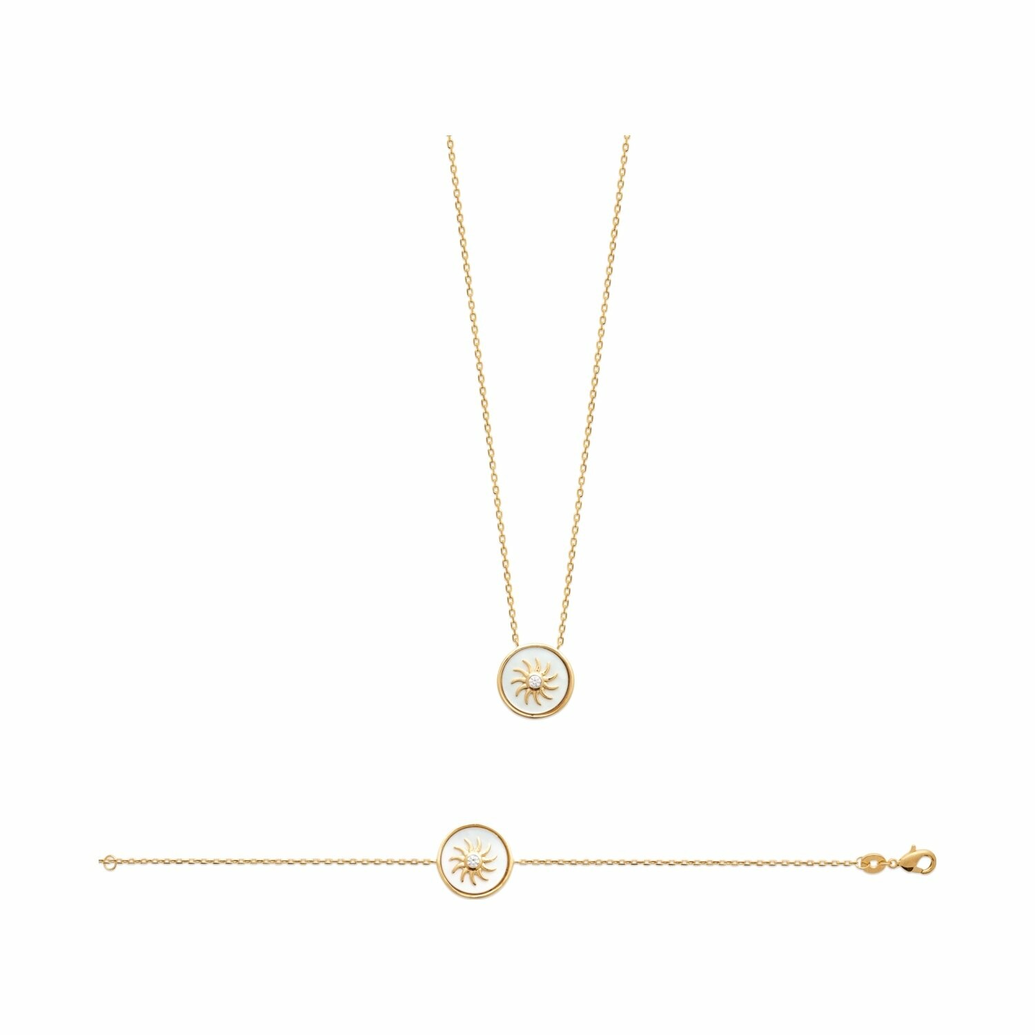 Bracelet en plaqué or, nacre et oxydes de zirconium, 18cm