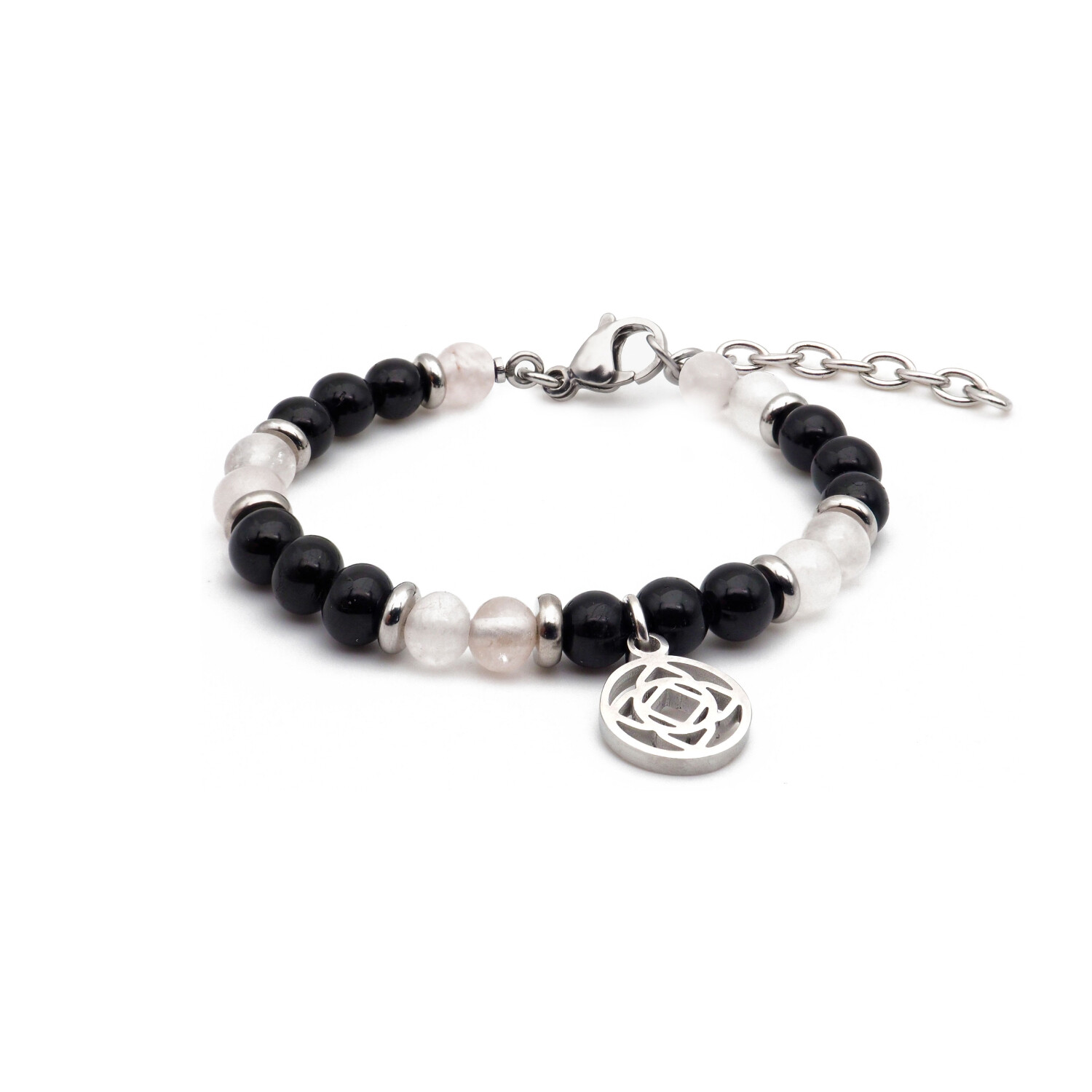 Bracelet Stilivita Equilibre en acier, quartz rose et tourmaline noire