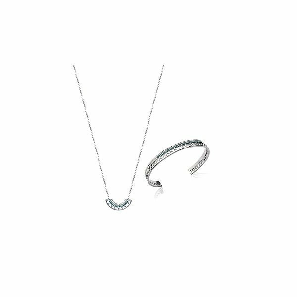 Collier en argent rhodié et pierre synthétique, 45cm