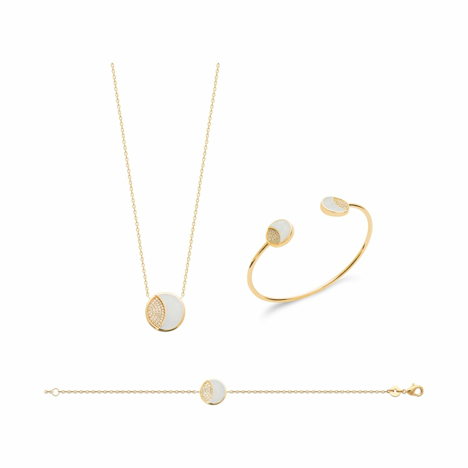 Collier en plaqué or, nacre et oxydes de zirconium, 45cm